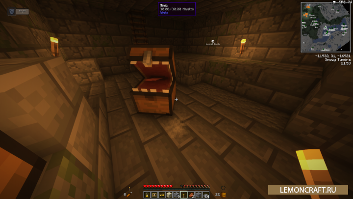 Мод на сложные структуры Mimic предназначен для усложнения ванильных структур, что сделает исследование мира Майнкрафт более интересным и захватывающим. В игре появятся новые персонажи - мимики, которые похожи на простые сундуки, но если к ним приблизится, они оживут и нападут на вас. Довольно интересные мобы с кровожадной пастью.