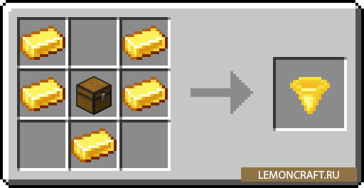 Мод на золотую воронку Golden Hopper небольшая модернизация созданная автором MrCrayfish, добавляет в игру золотую воронку, где вы сможете произвести настройку фильтра для пропуска предмета или для его взятия. В результате вы сможете значительно упростить редстоун-схемы.