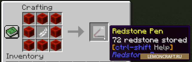 Мод на ручку для редстоуна Redstone Pen добавит в игру очень полезный инструмент, с помощью которого вы сможете размещать редстоун в том направлении, которое вам нужно.