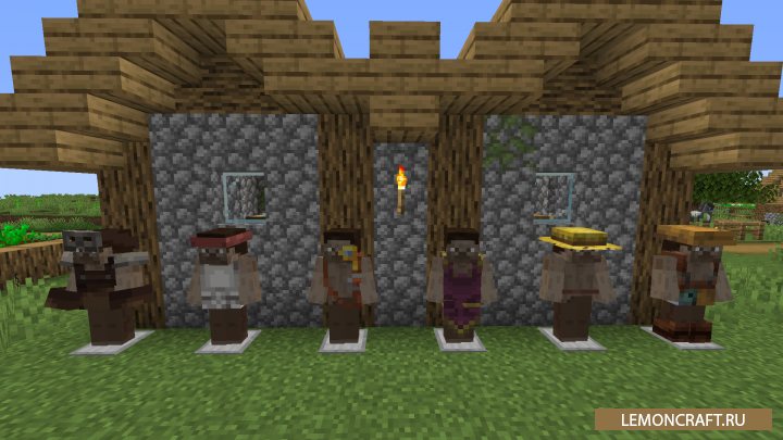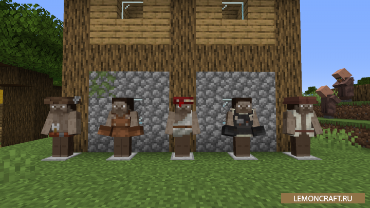 Мод на новую одежду Village Employment добавляет в игру возможность примерять на себя одежду, которую носят деревенские жители. Найти эту одежду можно в сундуках. Так же вы можете примерить на себя одежду странствующего торговца, но ее нужно выбить с моба. Если собрать полный сет одежды торговцы, вы станете невидимым в темноте или если на вас нападут.