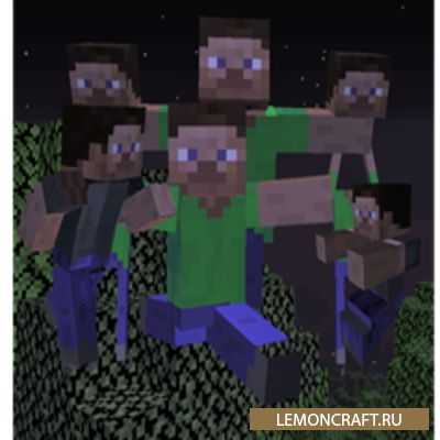 Мод на множество Стивов LotMoreSteves небольшая модификация, созданная с помощью MCreator, немного усложнит процесс выживания в игре, сделав ее более динамичной.